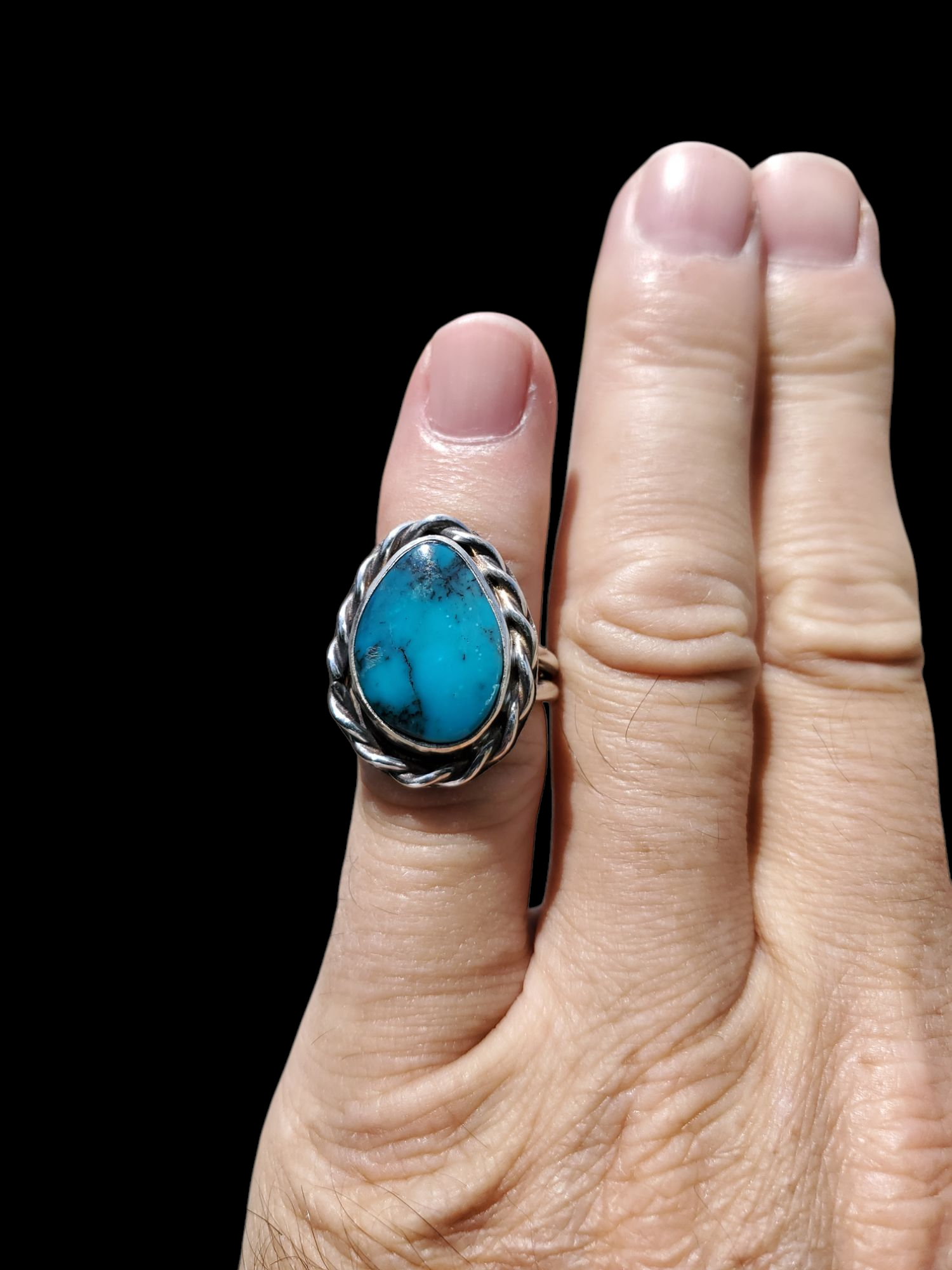 Bisbee Turquoise Statement ring. One of my special rings! I really live this style and it's comfort. Bisbee turquoise is one of the rarer and more costly of the American southwest turquoises.